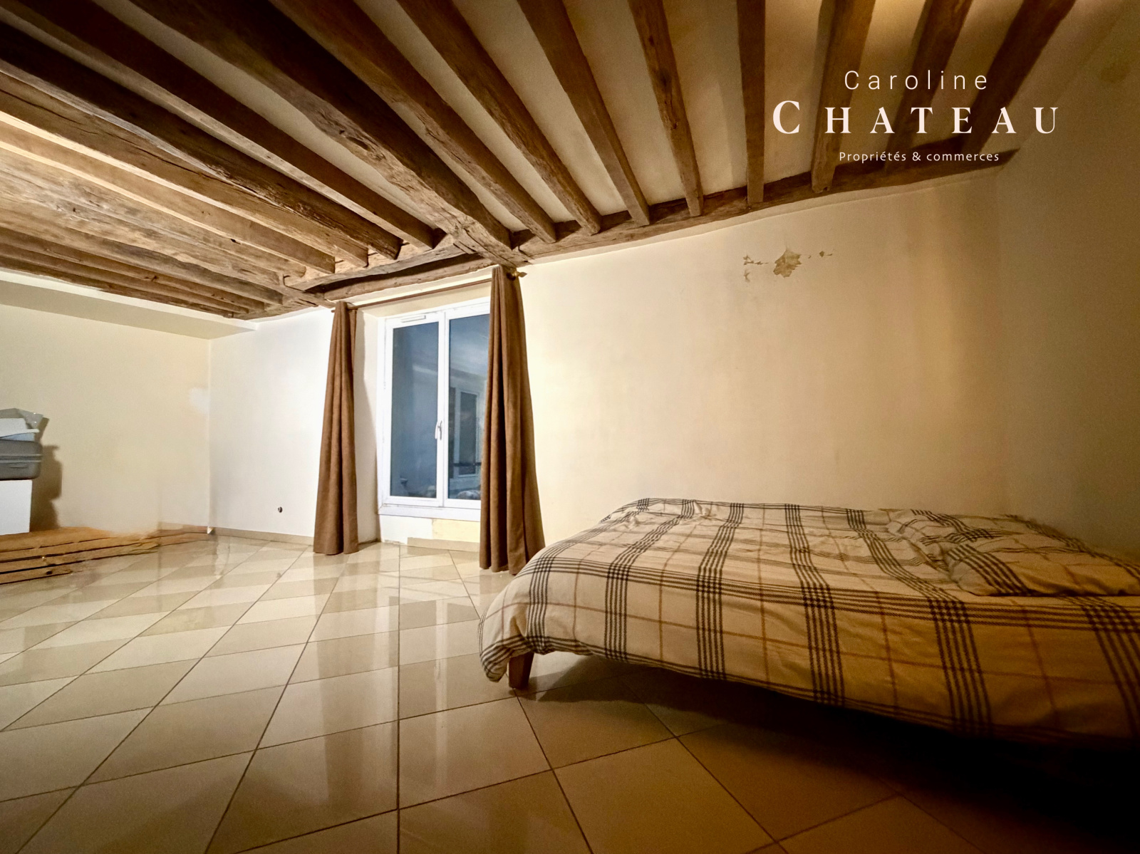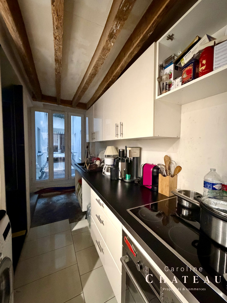 D'une superficie totale de 34,59 m2 loi carrez, Il se compose d'une pièce de vie de 25,5 m2 donnant sur une courette intérieure avec poutres apparentes, une cuisine avec une salle d'eau et un vrai wc donnant sur une 2ème courette intérieure.