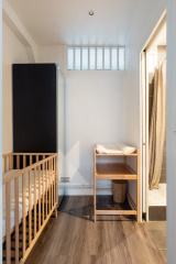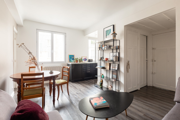 Nous vous proposons dans un bel immeuble ancien et calme avec gardien, au 5ème étage sans ascenseur, un appartement de 39 m2 exposé à l’ouest sans vis à vis, donnant sur une grande et belle cour pavée, au calme absolu.