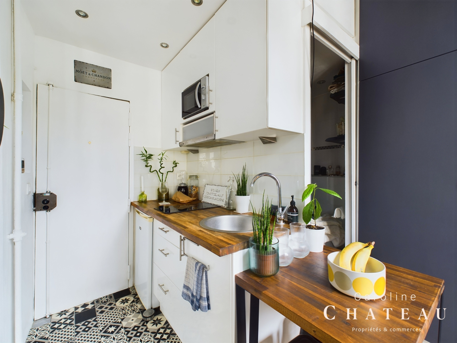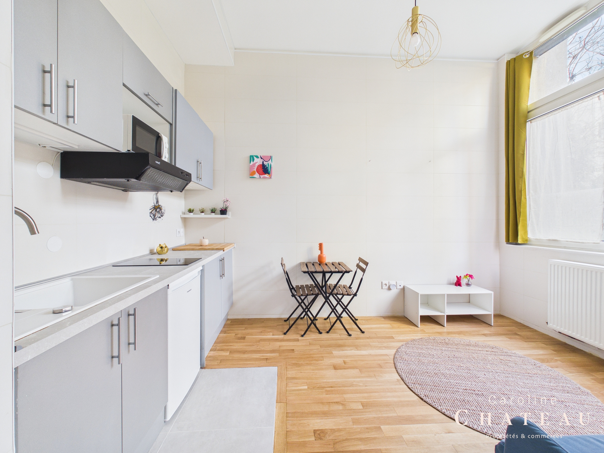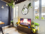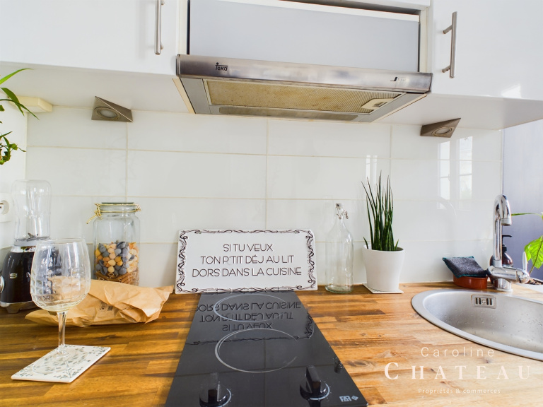 D’une superficie totale de 21,04m2 loi carrez, il se compose d’une entrée avec une cuisine équipée et aménagéedesservant une belle pièce de vie avec ses 2 fenêtres sur rue au calme, un grand dressing, un coin nuit séparé avec sa verrière accueillant un lit double de 140x190cm et une salle d’eau avec un wc sanibroyeur.