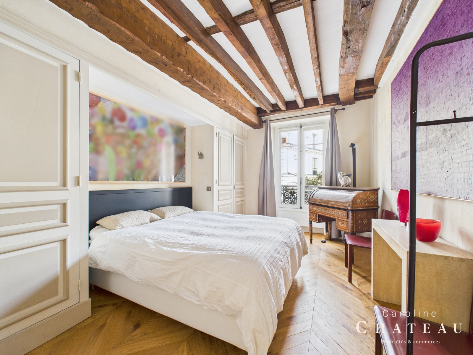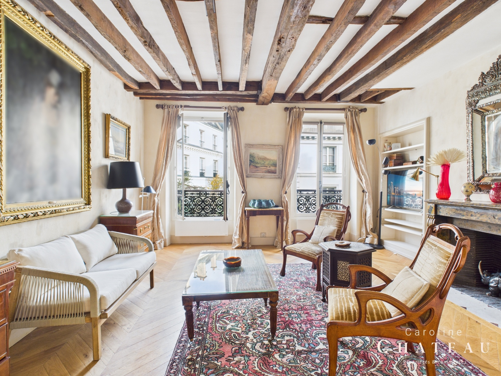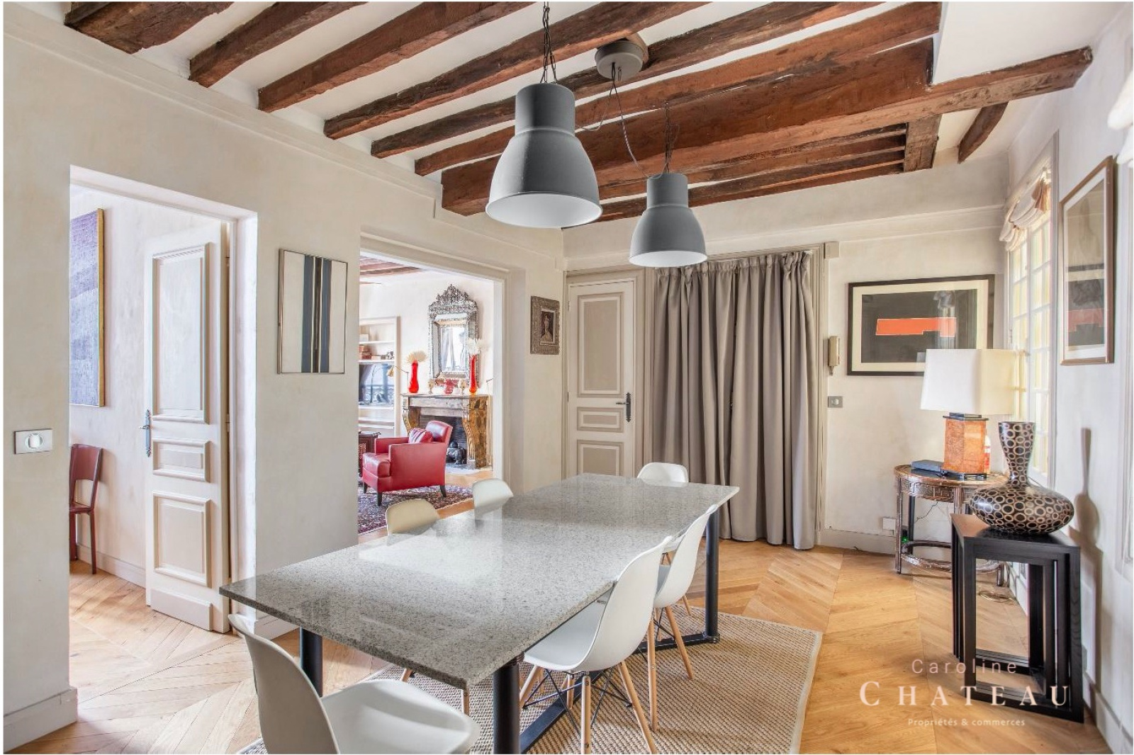 Au 3ème étage avec ascenseur, Caroline Chateau vous propose à la vente ce bel appartement de caractère d'une superficie de 70,13m2 loi carrez . Il se compose, d'une entrée desservant une salle à manger, attenante à une cuisine séparée aménagée et équipée avec un cellier, un séjour de 24m2 avec sa magnifique cheminée, une belle chambre avec placard de 16m2, une salle d’eau avec sa belle douche à l'italienne et un wc indépendant. Vous serez séduit par ses belles prestations et son authenticité au coeur du MARAIS. Belle hauteur sous plafond, climatisation, charme de l’ancien, parquet de hongie, poutres apparentes, nombreux rangements sur mesure.