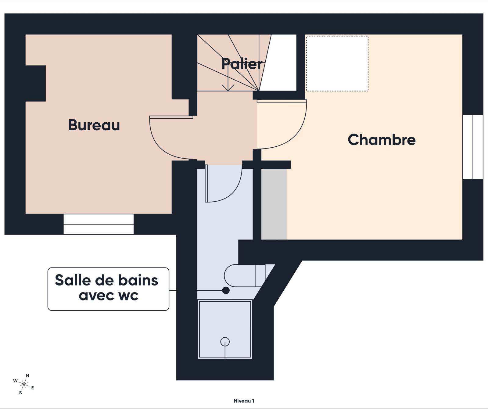 Au 1er étage, une chambre, un bureau et une salle d'eau avec douche et un wc.